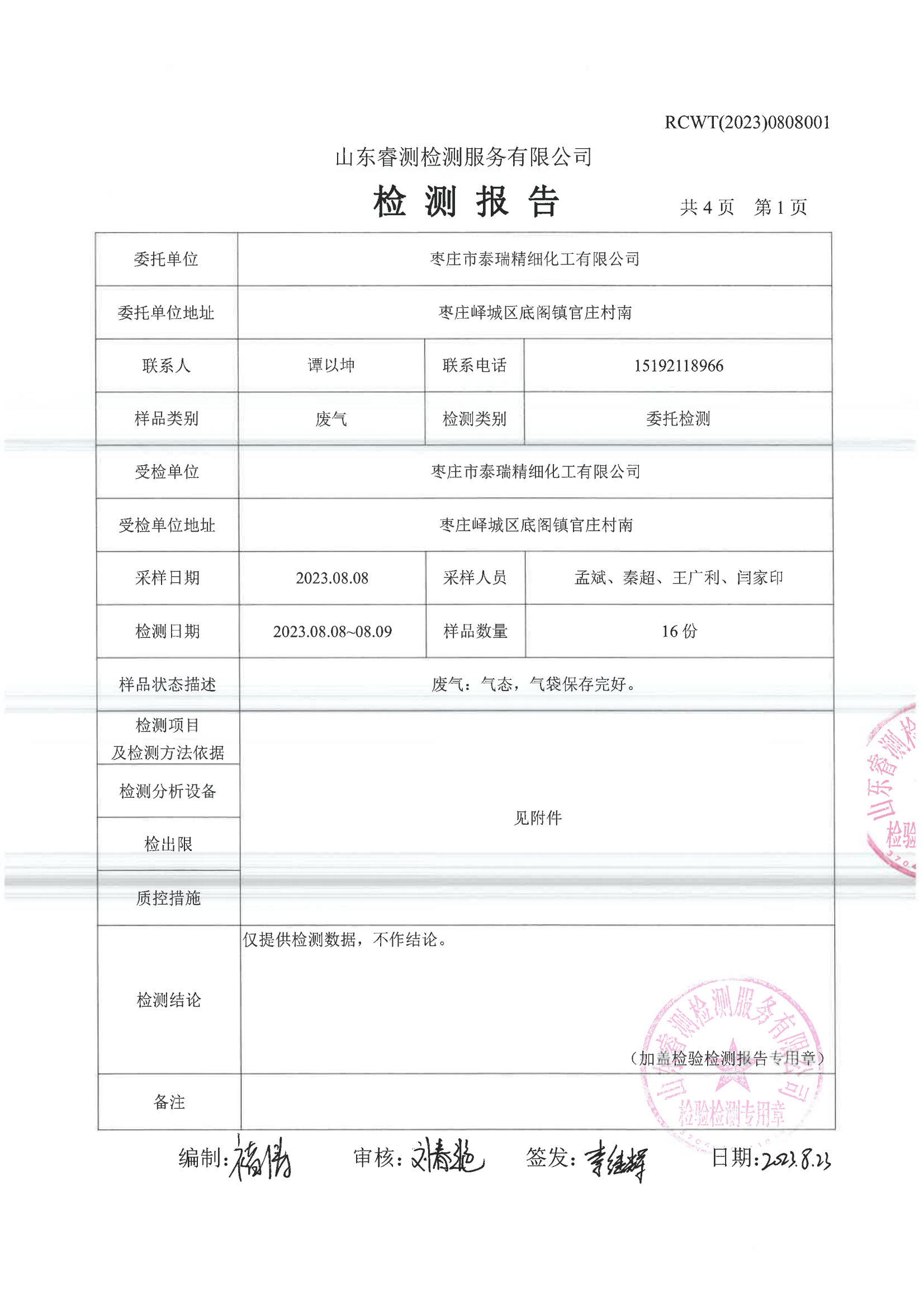 2023年第3季度(8月份)檢測(cè)報(bào)告