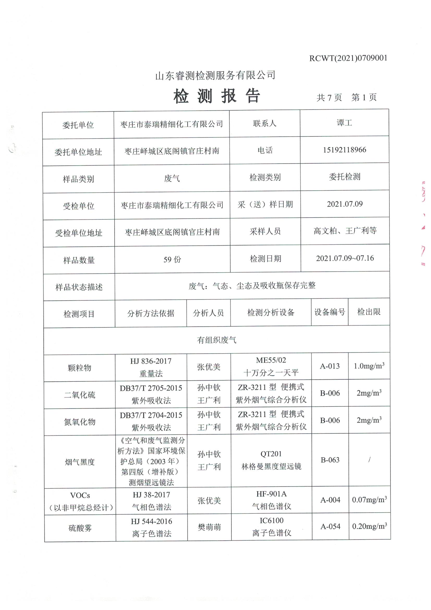 2021年7月份自行檢測(cè)報(bào)告